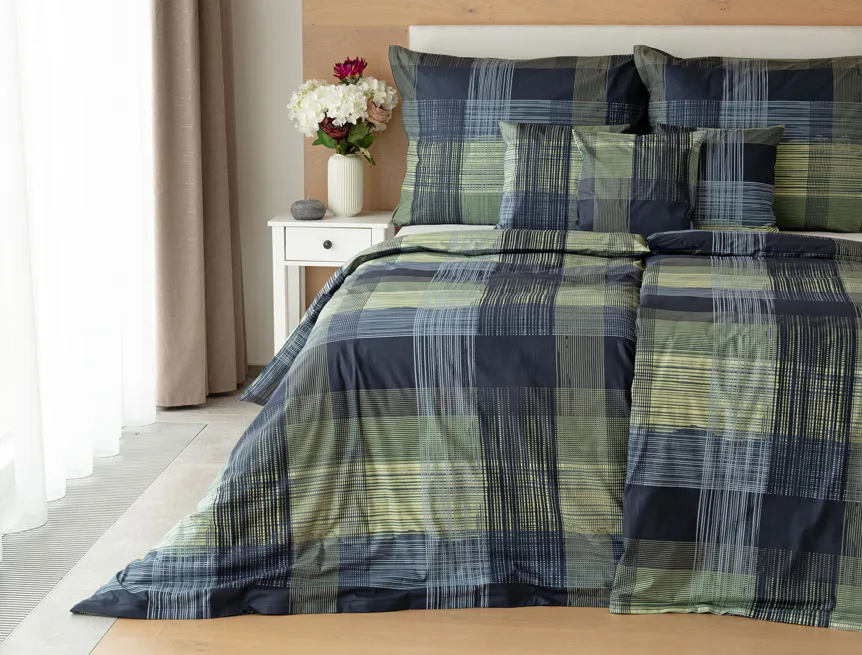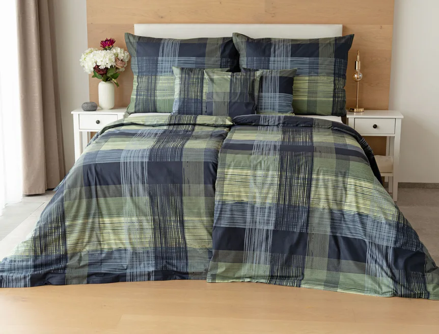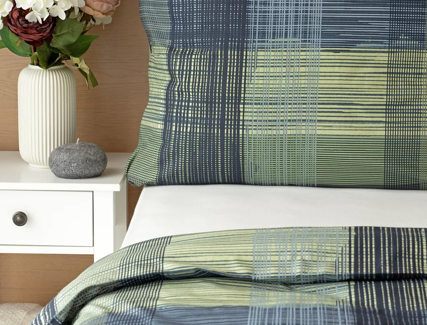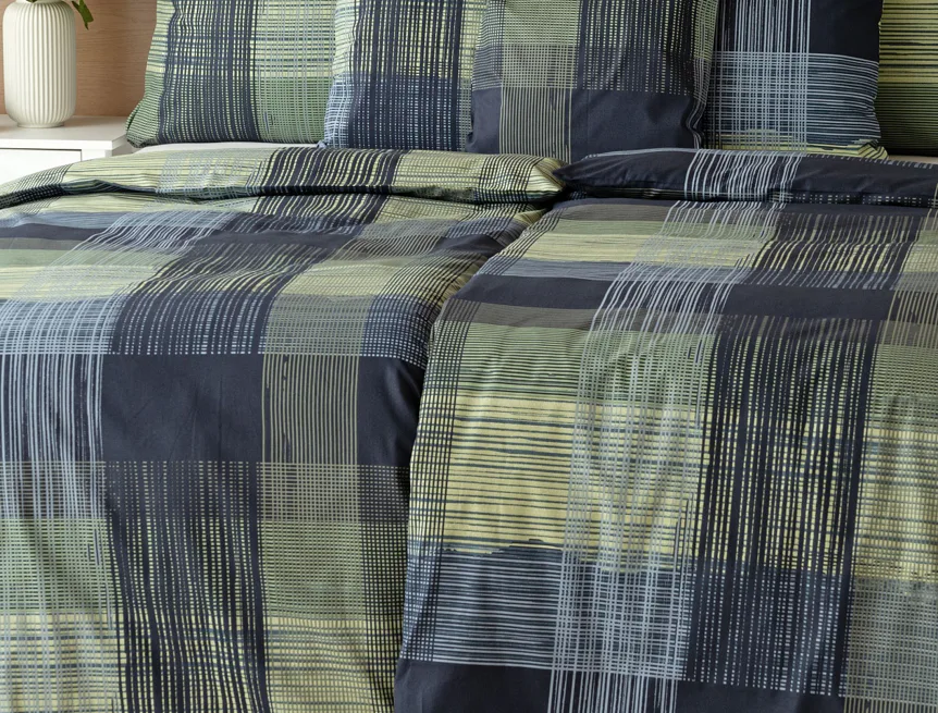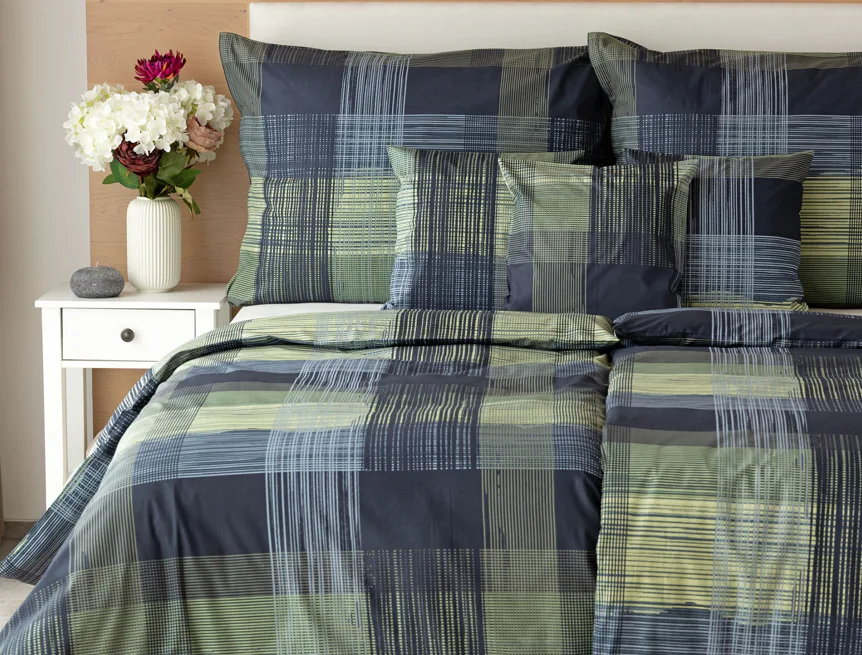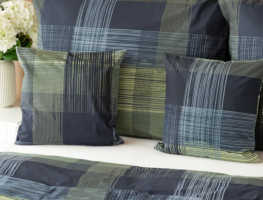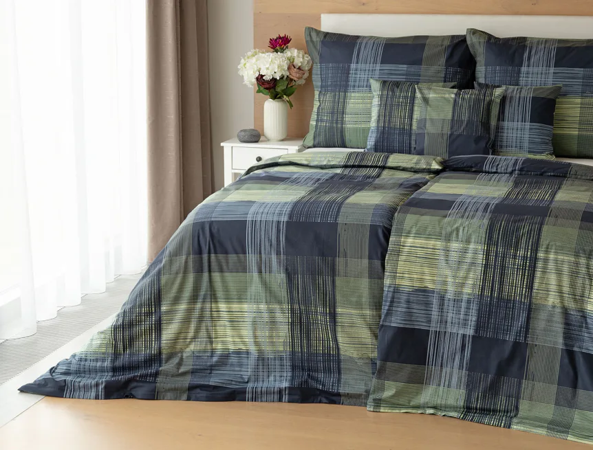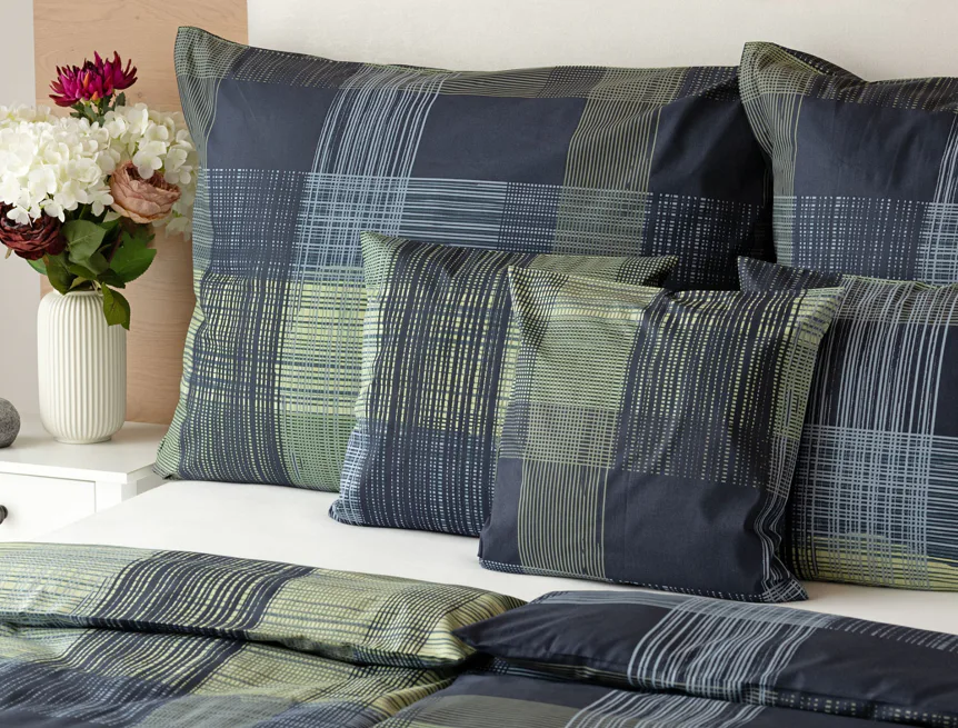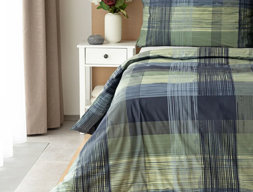 Dokonalé spojenie farieb v elegantnom vzore prinášajú bavlnené obliečky Wilson. Výsledný károvaný motív tvorený jemnými prúžkami kombinuje rozmanitú škálu tónov pistáciovo zelenej, modrej a antracitovej. Vzor je ako stvorený pre mužov, ktorý ocení každá praktická žena.