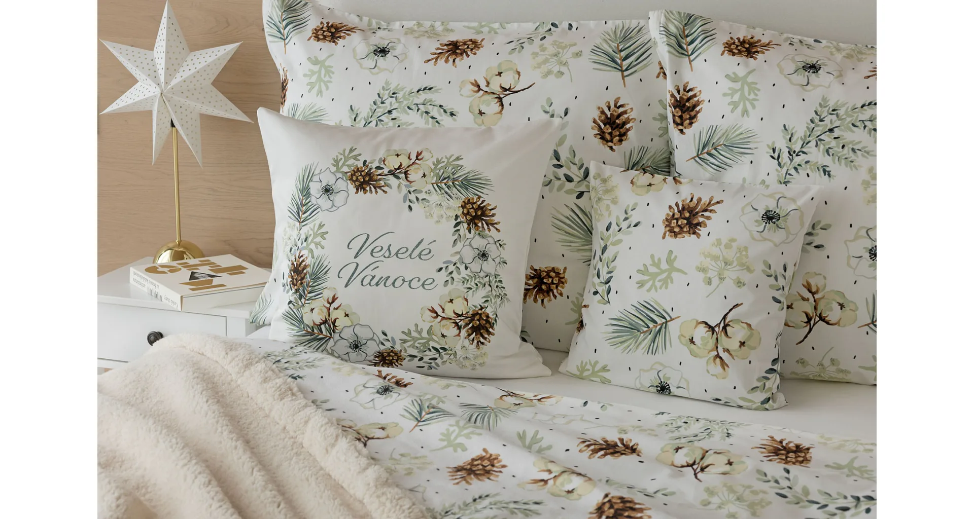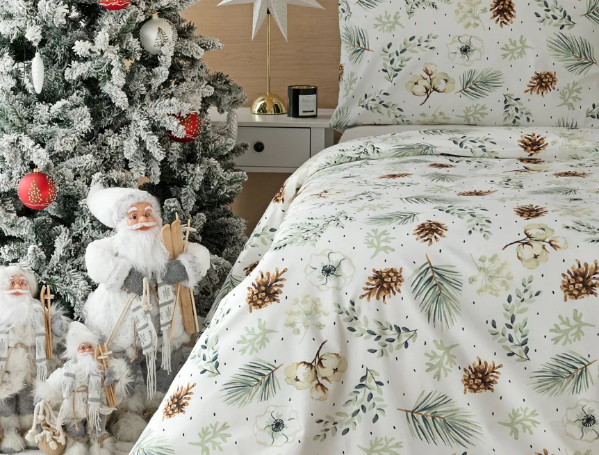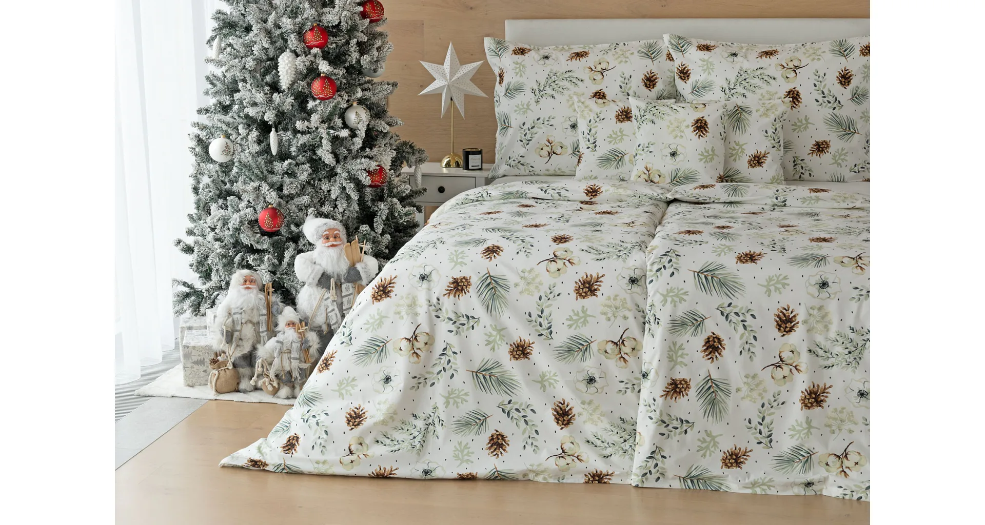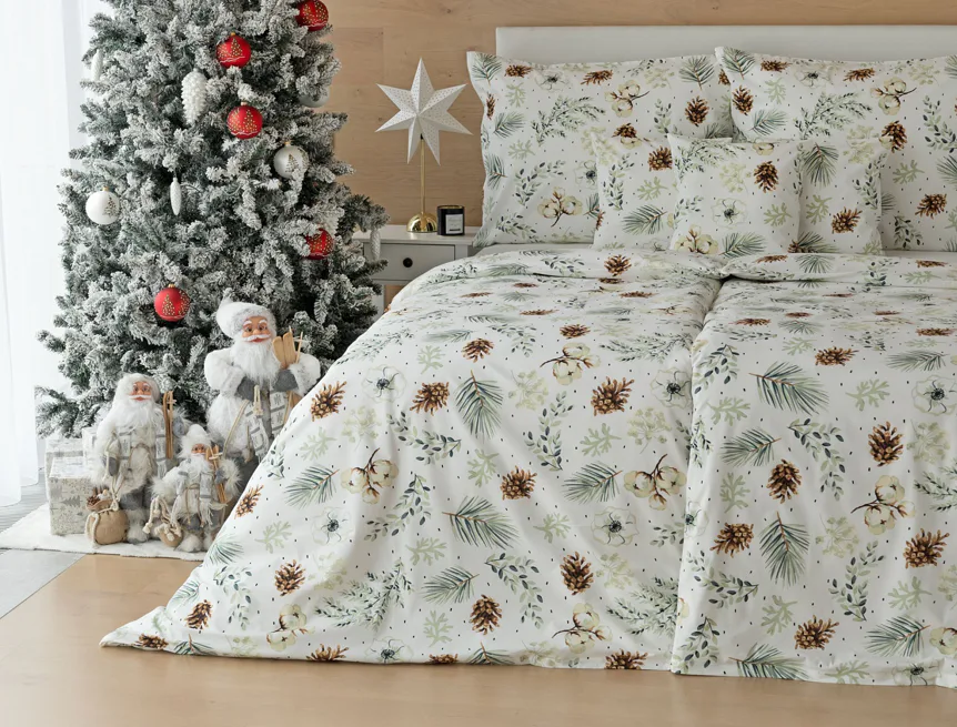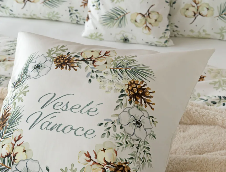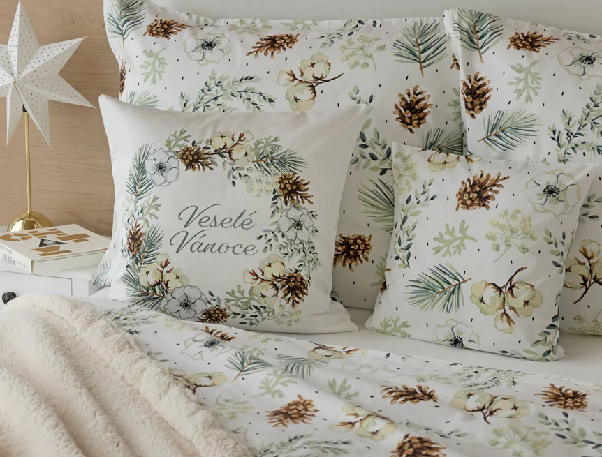 Keby to bolo iba trochu možné, posteľné obliečky Winter by zavoňali borovicou. Motív borovicových šišiek a vetvičiek na krémovo bielom podklade vyčarí vo vašej spálni sviatočnú atmosféru. Vhodne zvolený aroma difuzér či vonná sviečka sa postará o zbytok a váš zimný večer bude nezabudnuteľný.