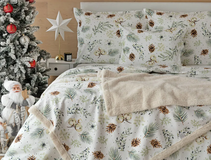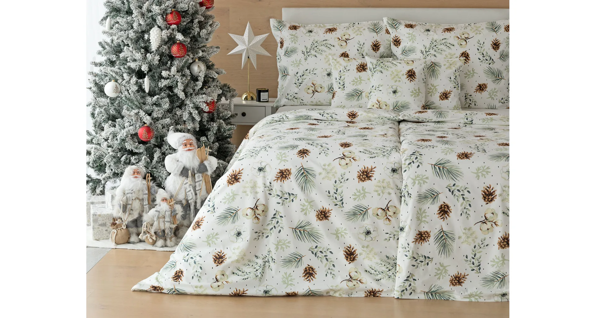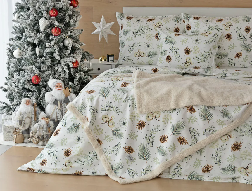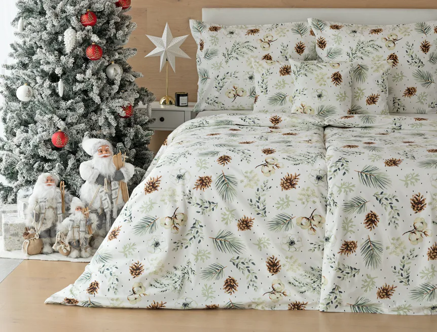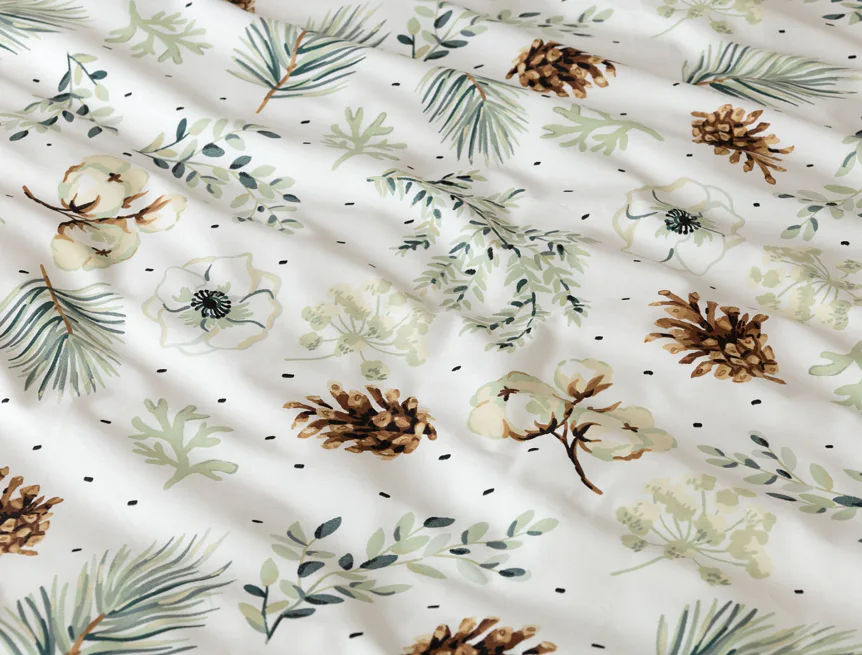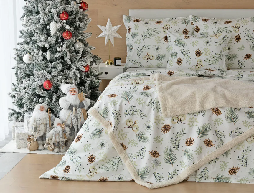 Keby to bolo iba trochu možné, posteľné obliečky Winter by zavoňali borovicou. Motív borovicových šišiek a vetvičiek na krémovo bielom podklade vyčarí vo vašej spálni sviatočnú atmosféru. Vhodne zvolený aroma difuzér či vonná sviečka sa postará o zbytok a váš zimný večer bude nezabudnuteľný.