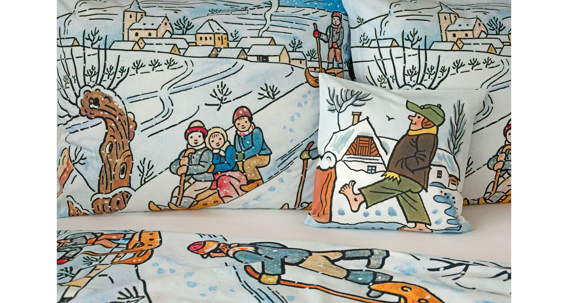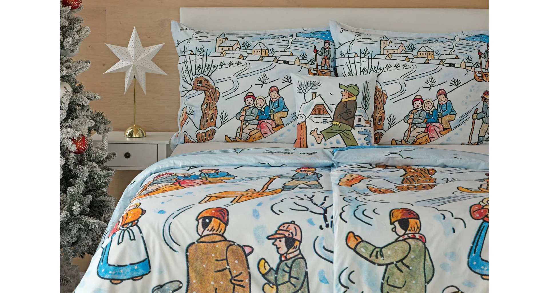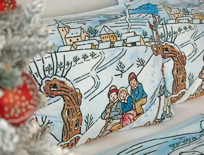 Pôvabné kresby Josefa Lady v mnohých z nás prebúdzajú spomienky na bezstarostné detstvo a rozprávkové zimy plné snehu, tradícií, hier a radosti. Vykúzlite si takú čarovnú atmosféru aj u seba doma vďaka bavlneným obliečkam Zima.