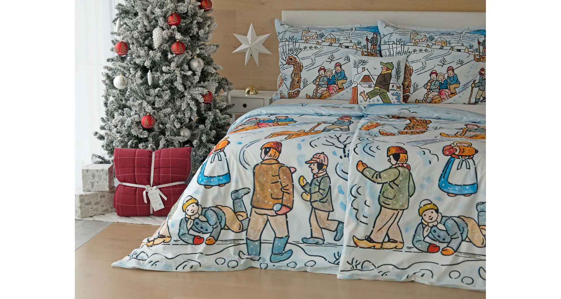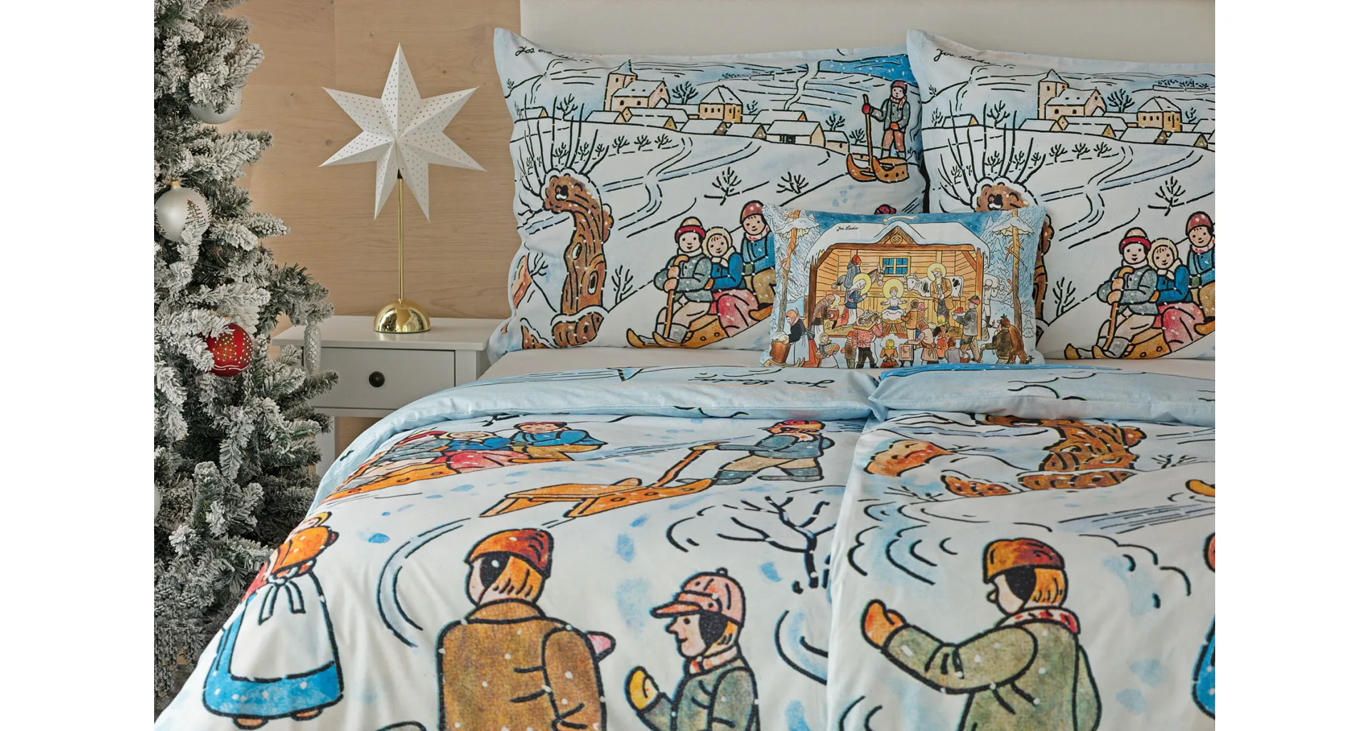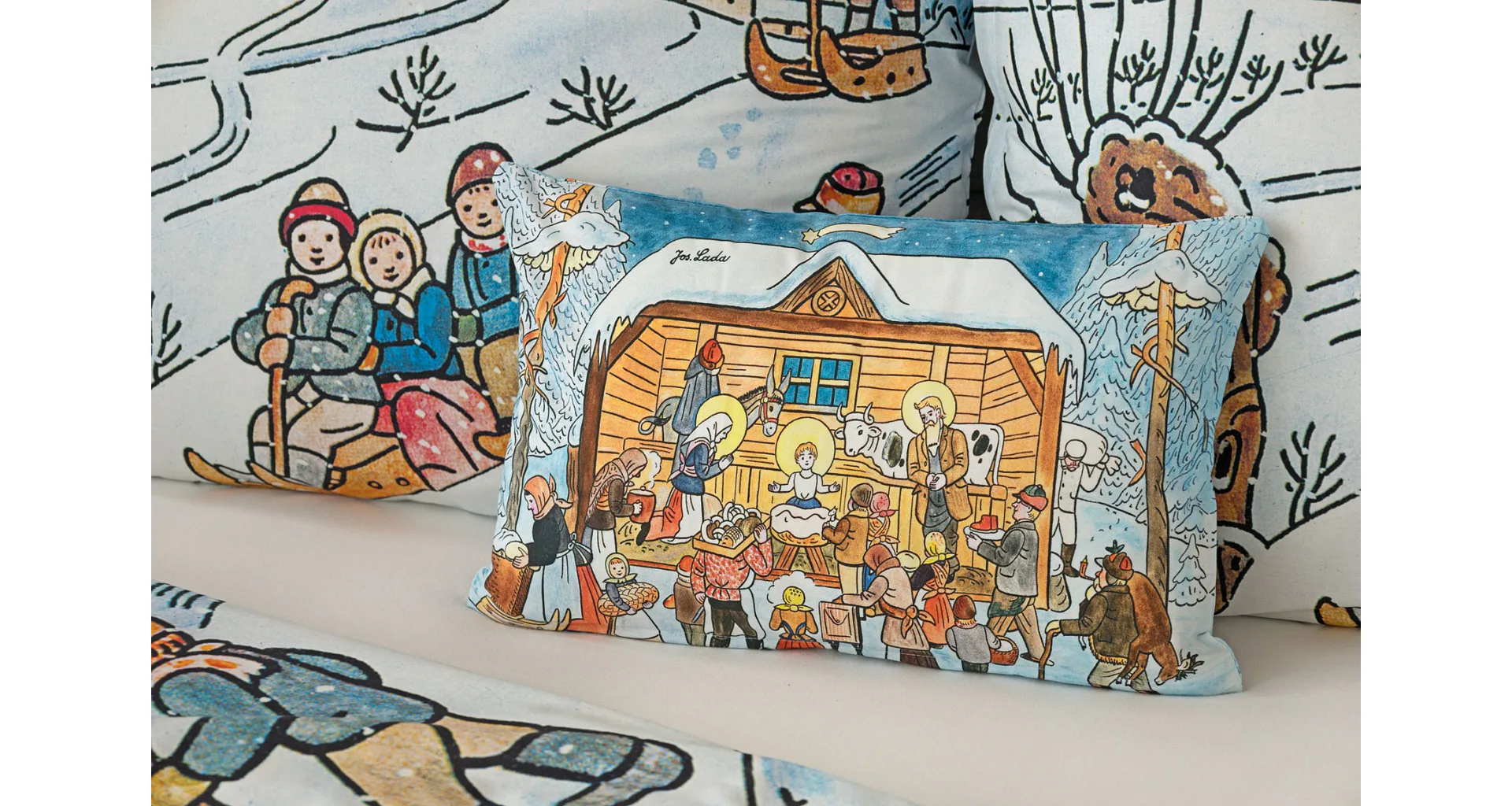 Pôvabné kresby Josefa Lady v mnohých z nás prebúdzajú spomienky na bezstarostné detstvo a rozprávkové zimy plné snehu, tradícií, hier a radosti. Vykúzlite si takú čarovnú atmosféru aj u seba doma vďaka bavlneným obliečkam Zima.