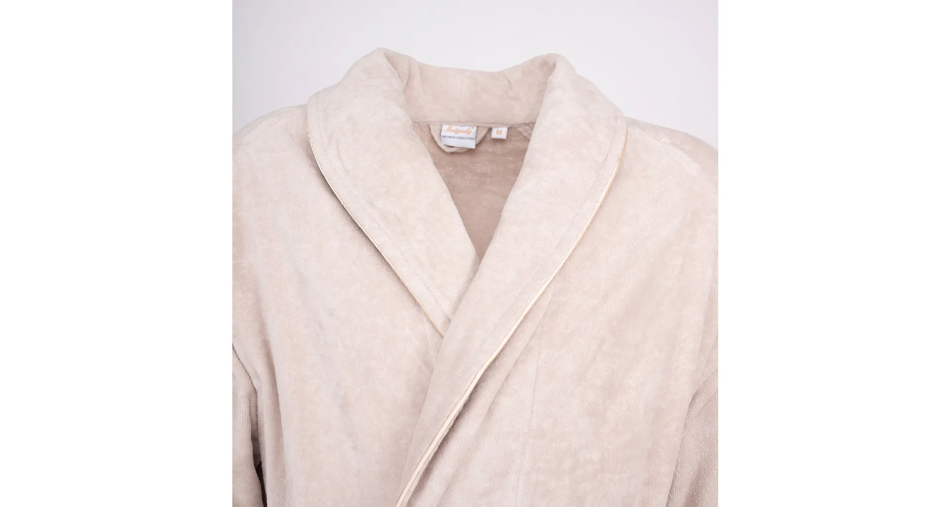 Župany jsou vyrobeny ze 100% prvotřídní bavlněné příze, povrchovou úpravu tvoří hebké smyčkové froté. Přírodní materiál je zárukou jedinečného komfortu, precizní zpracování zaručí dlouhou životnost výrobku. Elegantní vzhled celé kolekce podtrhují jemné pastelové barvy doplněné v čelním lemu zlatavou paspulí.