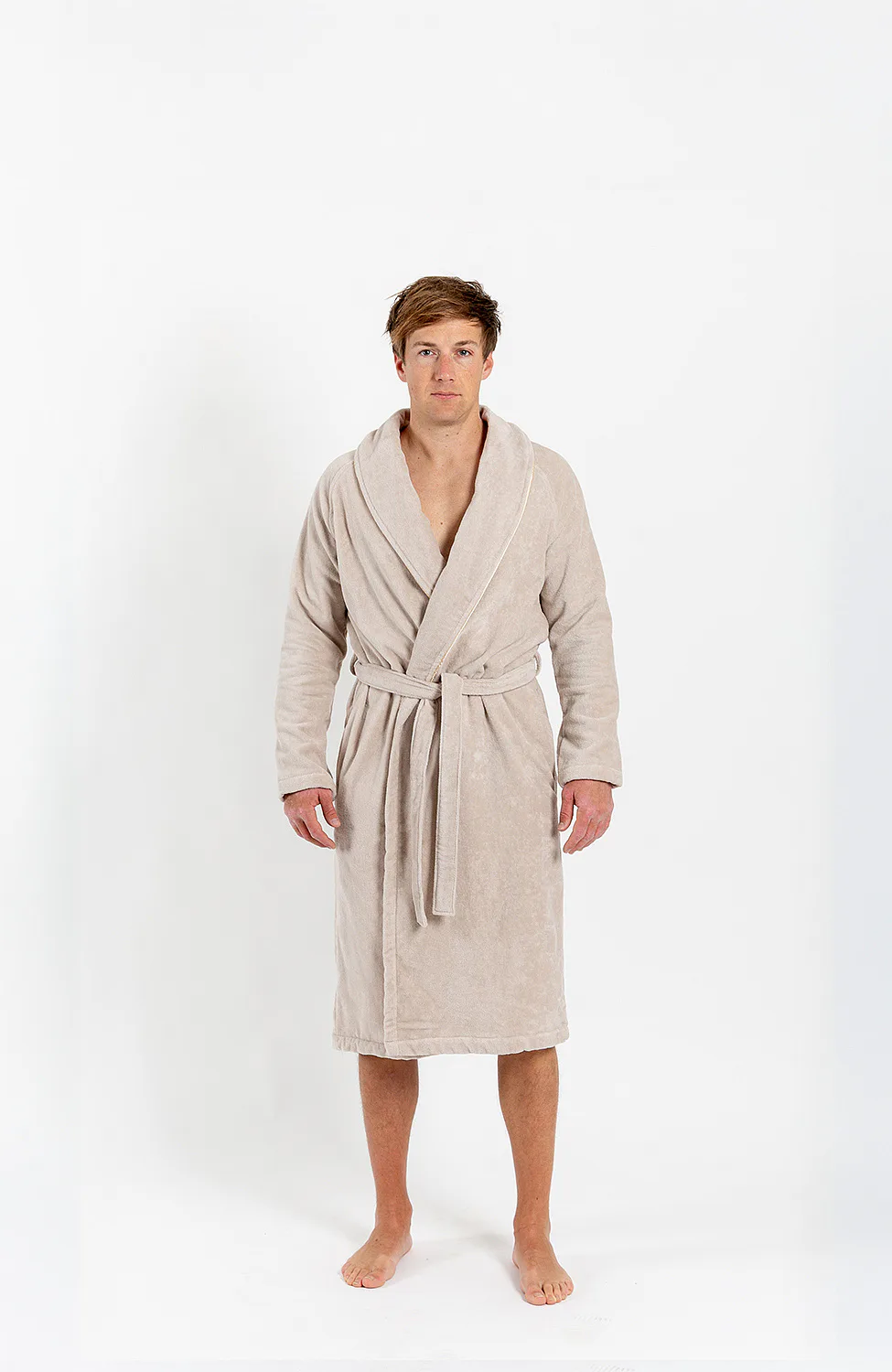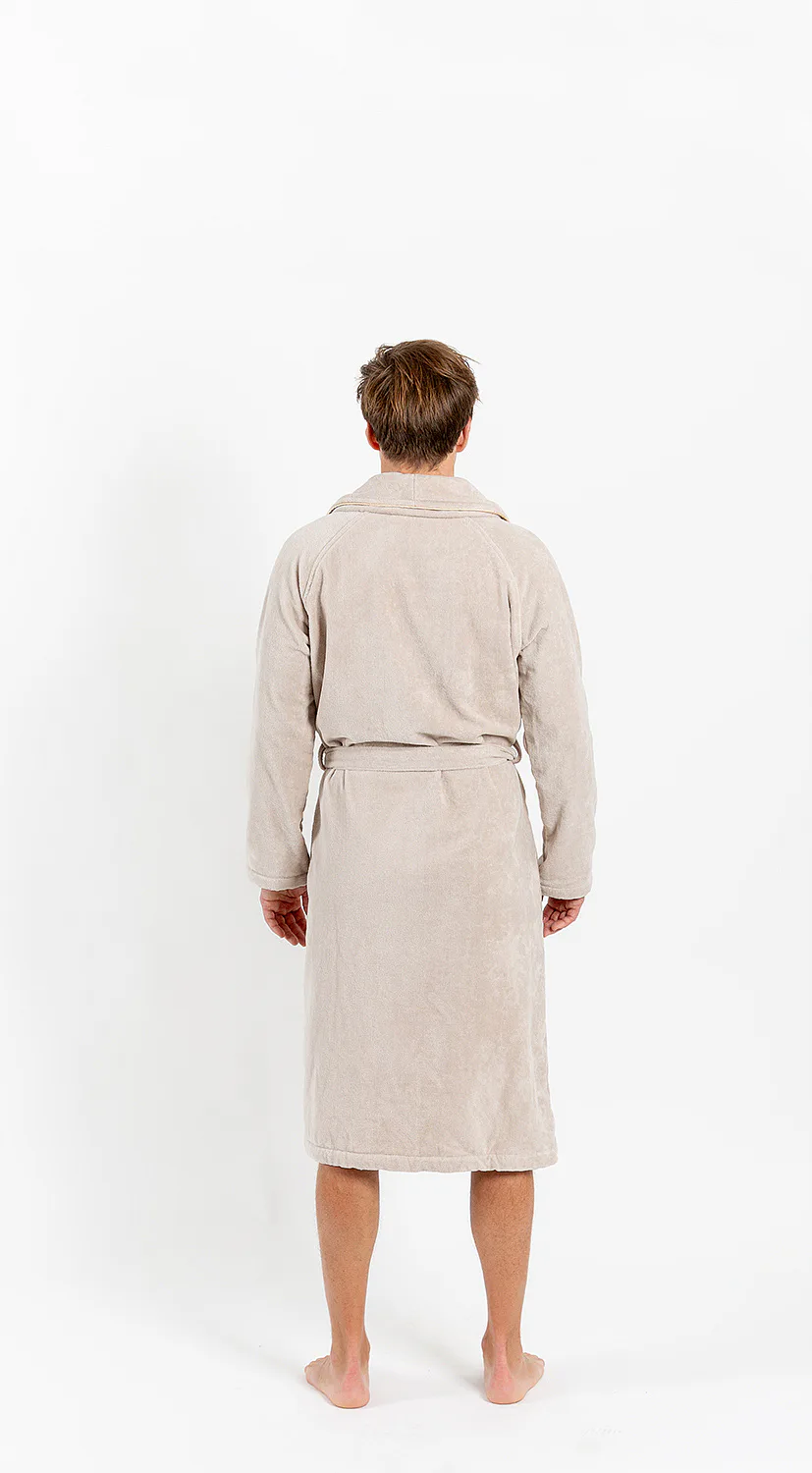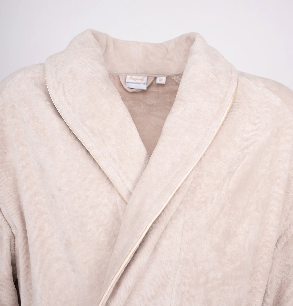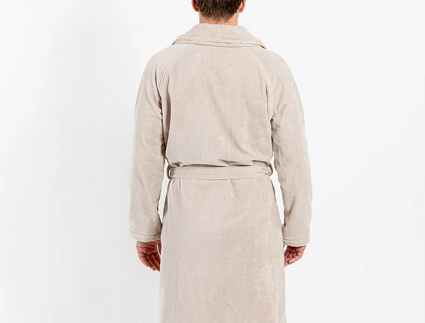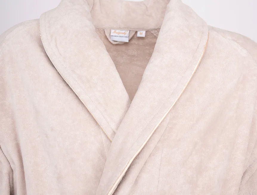 Župany jsou vyrobeny ze 100% prvotřídní bavlněné příze, povrchovou úpravu tvoří hebké velurové froté. Přírodní materiál je zárukou jedinečného komfortu, precizní zpracování zaručí dlouhou životnost výrobku. Elegantní vzhled celé kolekce podtrhují jemné pastelové barvy doplněné v čelním lemu zlatavou paspulí.
