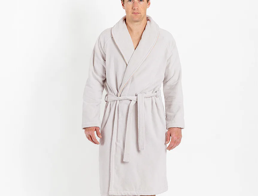 Župany jsou vyrobeny ze 100% prvotřídní bavlněné příze, povrchovou úpravu tvoří hebké velurové froté. Přírodní materiál je zárukou jedinečného komfortu, precizní zpracování zaručí dlouhou životnost výrobku. Elegantní vzhled celé kolekce podtrhují jemné pastelové barvy doplněné v čelním lemu zlatavou paspulí.